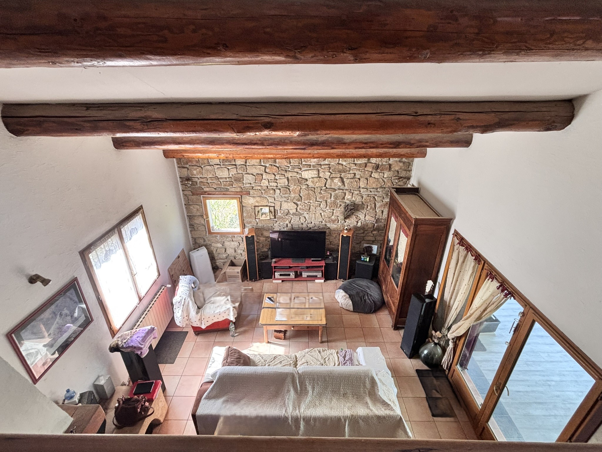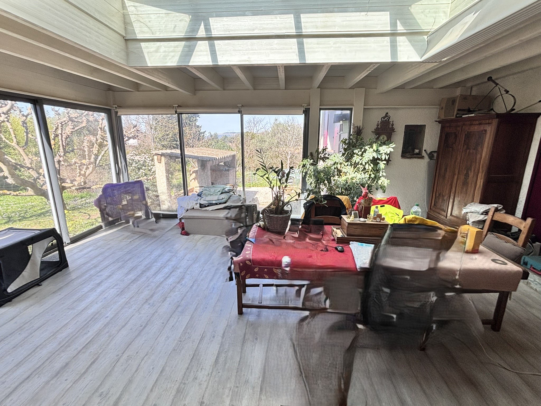 Description intérieure : Un Salon ouvert sur une cuisine meublée et équipé et donnant sur un deuxième avec un skydome.